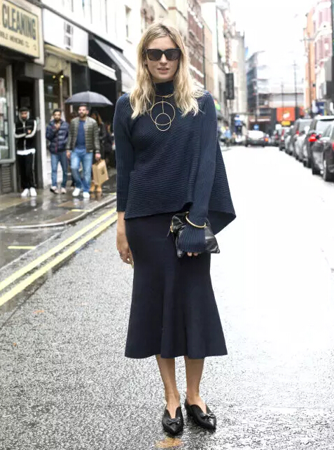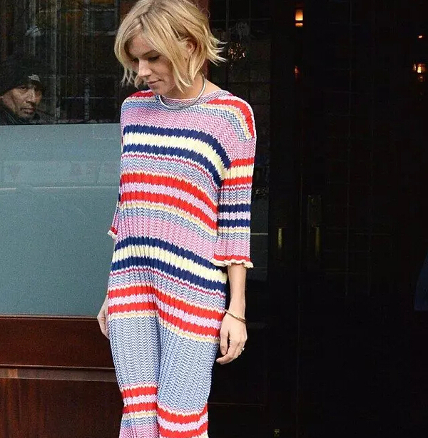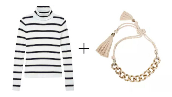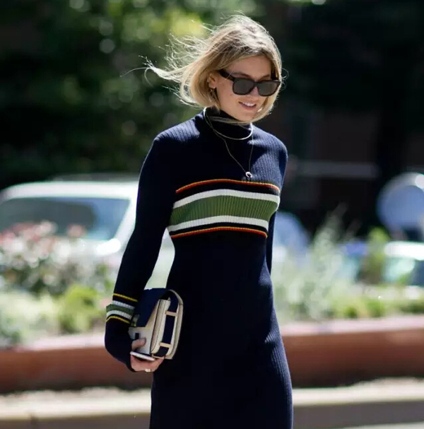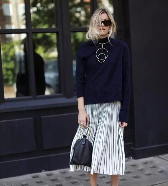 This seemingly seemingly "superfluous" combination is actually quite test with skill, striped knit itself is dazzling, the choice of the necklace should try to pick simple or strong sense of presence, otherwise it is really superfluous.