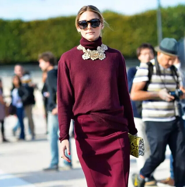 The so-called Best partner said that this combination of 2015 popular color Marsala burned red wine, not to say more, and gold with a steady jump, Olivia Palermo body is the perfect interpretation of the elegant and fashionable two words.