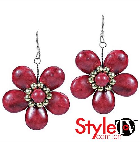 Aeravida red coral flower earrings