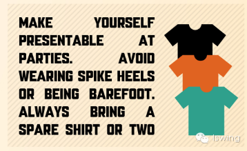 If you sweat more, you can bring a few more clothes, or wipe the towel, please do not wear suspenders / hurdle. Pants pocket is best not to put things, if not installed, leader please put the items in their left pocket, and follower please put in the right pocket. Because swinging requires large movements, it is best to wear flat shoes, soles slippery enough, can circle, kick the time will not fall on the line (so it is best not to wear non-slip shoes and slippers).
