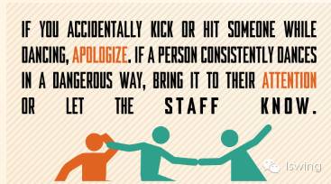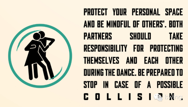 In the dance process, please pay attention to the situation around! Especially the leader, because the follower's movements are controlled by you, when turning follower, please be sure to pay attention to where the follower to go to prevent injury. Follower also wants to be aware of the situation behind him for the leader. Sometimes I jump high, regardless of the surrounding circumstances, not only will they hit people, your partner will suffer, when no one will be dancing with you ??