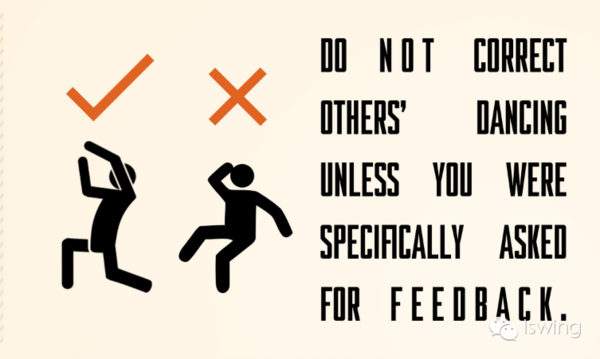 In the same way, please do not give directions to other people's dances. In particular, do not stop during the dancing and start teaching. If you want to say something, please finish the song first, then ask each other: "Can I give you a suggestion?" Or "Do you want to learn what you just did?"