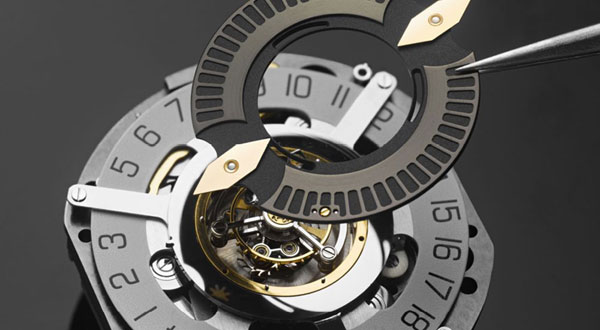 The brand's original "butterfly" system is inspired by the monarch butterfly's flying style: the most prominent example of nomadic life in the microcosm. Each year, these colorful creatures have to make a wonderful journey across the American continent, pushing mass migration to an all-time high. Just as the monarch butterfly wings flashed over the track as unique, "Butterfly" system support plate carrying two independent, can easily stretch the diamond-shaped pointer. The two pointers alternately run on a 180-degree semi-circular minute dial and indicate the number of minutes in succession. The first pointer is located above the circular arc indicating the advance of the minute. At this moment, the second pointer remains "standby" retracted, that is, the second pointer is hidden from beginning to end when the supporting disc carrying the pointer rotates. When the first pointer reaches the 55th minute, the other pointer swipes fast for a quarter of an hour, reaching the 00 minute index simultaneously with the first one. After the first pointer into the "standby" retracted state, the second pointer to complete the next 55 minutes to indicate work.