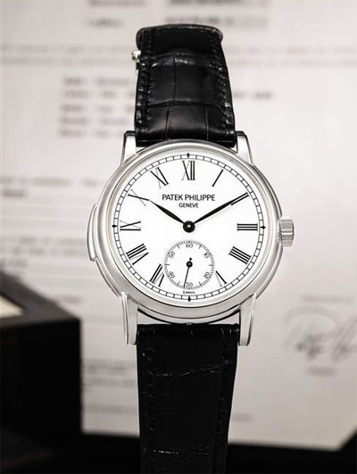 Launched in 2005 Patek Philippe 5078 model three asked the watch is sophisticated technology, sound clarity of the model for a low-key luxury synonymous. Three repeaters can be described as synonymous with excellent craftsmanship, accurate and precise system of questioning consists of more than 100 parts, to create a crisp and loud resonance effect in the square inch of the case is also not easy, watchmaker technology and patience One can not. Thierry Stern, president of Patek Philippe, insisted on in person for the final test of each three questions before leaving the factory to ensure that the tone to meet the brand's highest standards. The wristwatch inquires the lever cleverly hidden in the front, only the real collector can see its subtleties. The auction is released early platinum case with a white enamel dial version, then it has been replaced by black lacquered dial version. According to statistics, the 5078 model has only produced about 100 since its release.