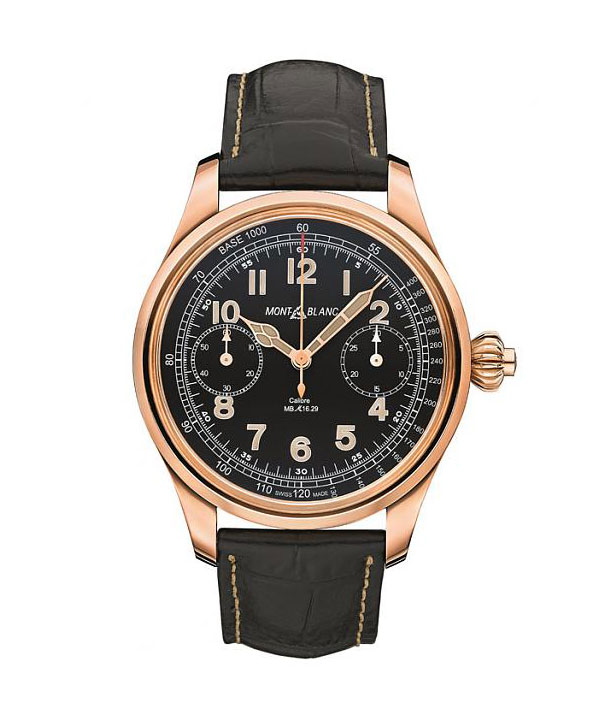 The Montblanc 1858 watch debuted at SIAR 2015 is a tribute to the Montblanc Minerva watch factory. Innovatively designed watches are inspired by retro lines inspired by the watch factory's 157-year history. Created by all kinds of chronographs. The single-button chronograph developed by the Minerva watch factory in the 1930s to meet the precise timing requirements is the inspiration for the new Montblanc 1858 Series Tachymeter Stopwatch Limited Edition with a round 18K rose gold case and curved lugs According to the harsh standards of manual winding mechanical movement, the new chronograph watch not only has a luxurious texture, but also contains the spirit of technological development in the 1930s, combined with the important design of the watch factory heritage, such as with co-axial Bevel the crown of the pieces, black face plate with large cold Arabic numerals and scale rate ring calculation.