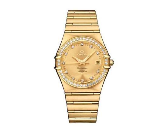 This Omega constellation series watches with implicit and introverted 38.5 mm 18K gold case, with the same material bracelet; also made of 18K gold dial. Watches 18K gold hands covered with LumiNova luminous coating, in any light conditions can be quickly and accurately read the time. The central seconds hand tail is the exquisite 007 logo (also 18K yellow gold material), in a clever way to pay tribute to the reputation of the agents.