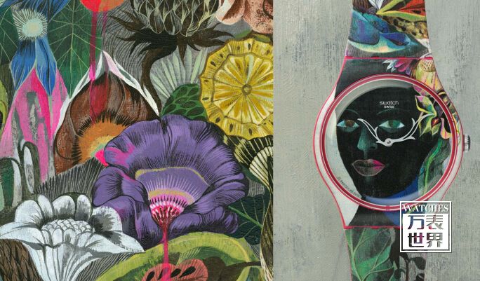 Inspired by the representatives of Olaf Hajek, one of the world's most famous illustrators, Swatch has introduced two flower-magical Realistic Illustrator watches, Flowerhead and Nature Man. A woman with a black face and a man with a bluish green face is surrounded by glamorous flowers, expressing the eternal question of existence or death.
