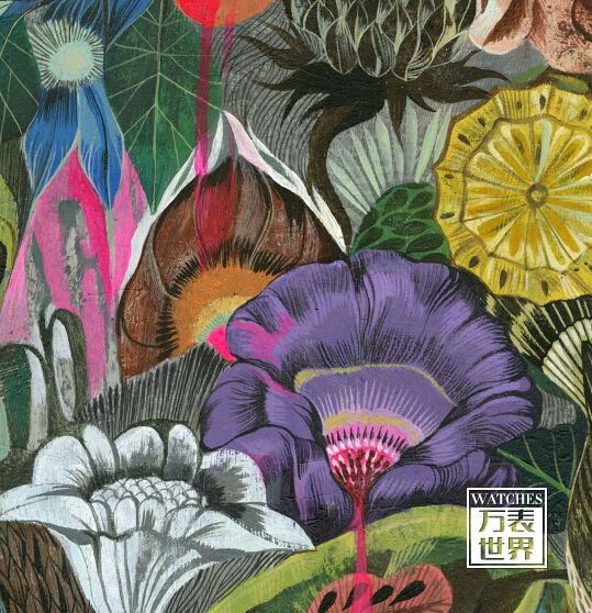 Both watches use two floating leaves as the time, minute hand, the limited edition of 888. The packaging box also uses the unique style of Olaf Hajek, colorful printing presents a fascinating world of plants and flowers. The bird feathers half hidden in the jungle looming, as if waiting for you to reveal the mystery of time.